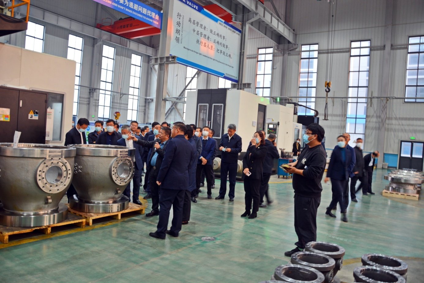 AFA公司董事长谢正泽向观摩团成员全面介绍了公司基本概况和发展规划,并陪同参观交流。观摩团成员深入AFA公司智能制造车间,参观了公司精加工、装配、检测、试压等主要生产线和关键工序,听取了公司高端阀门产业研发现状和近期发展目标以及公司当前疫情防控、生产经营、产品市场等工作汇报。佟海燕主任对AFA公司“科技含量高、市场前景好、自主国产化”的高端C型耐磨球阀产品给予了高度评价,对AFA公司管理团队精细管理、科技创新、自主研发给予了充分肯定,鼓励企业要立足现状,做大做强,再创新高,为地方经济社会发展作出更大贡献。