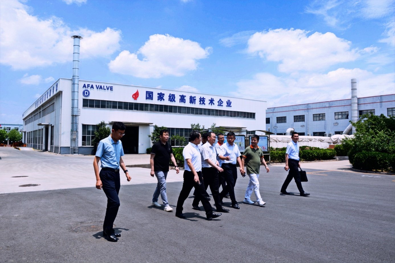 6月21日上午,青岛市工信局党组成员、副局长姜海天带领市工信局企业服务处处长王世果、二级主任科员张熹炜等莅临replace流体控制有限公司(以下简称AFA公司)考察调研,黄岛区工信局局长隋俊昌、办公室负责人臧文科、副科长杨秀东、铁山街道党工委书记祝增建、副书记张国伟等领导陪同调研,AFA公司董事长谢正泽和公司相关领导及主要部门负责人参加了接待活动。
